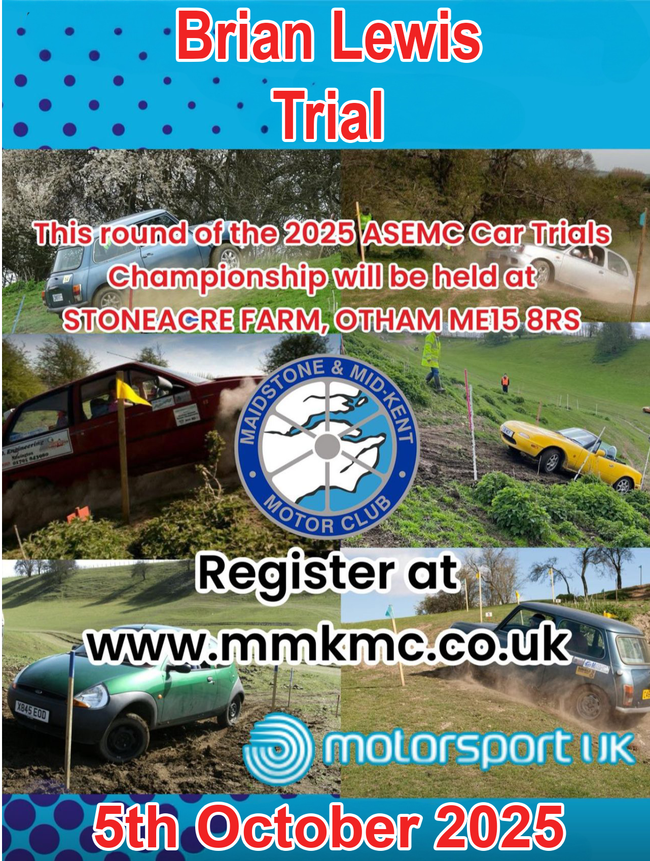 The 5th of October is the date for the Brian Lewis Car Trial being held at Stoneacre Farm in Otham. Trials aren’t about speed, they’re about keeping moving and not
