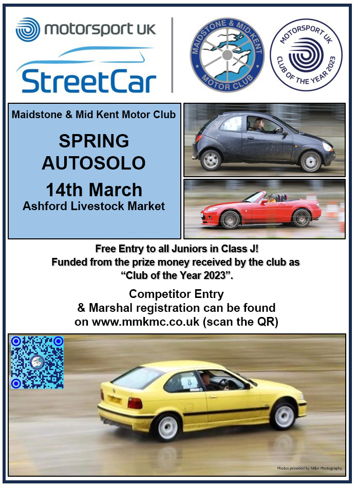 14th March @ Ashford Livestock Market Regs and Entry can be found here This is also Round 2 of the Sevenoaks & District Motor Club Autosolo championship